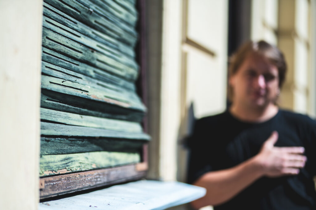 Portretiranci: Zala Čas, Katja Kotnik Prosenjak, Mojca Kunej, Tomaž Pačnik, Alenka Seničar, Andraž Čas, Žan Marzel, Milka Gruber in Miša Žvikart, so sokreatorji Mestogeničnosti. Njihovi portreti v interakciji s stavbami so temeljni nosilci razstave.